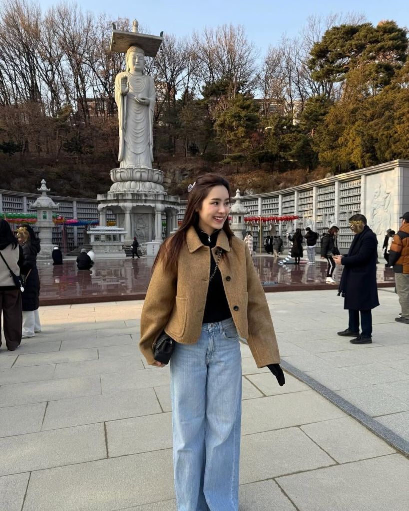 This outfit mixes casual and structured pieces for a balanced winter look. The blazer adds polish while wide-leg jeans keep things relaxed. It’s an easy choice for everyday outings that still feels intentional.
