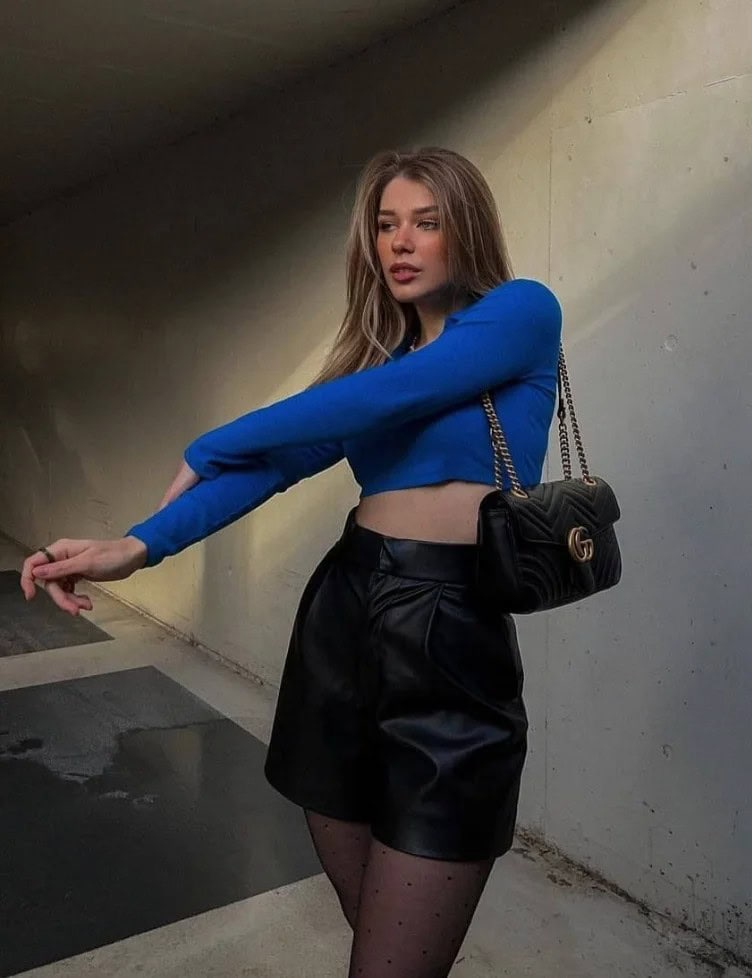 The contrast between loose and fitted pieces makes the outfit eye-catching without feeling uncomfortable.