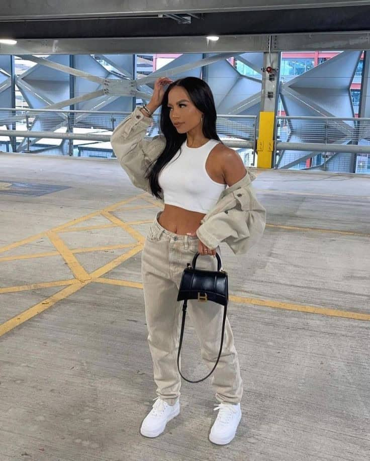 This look focuses on comfort without losing style. A crop top keeps it clean while cargo pants add practicality.