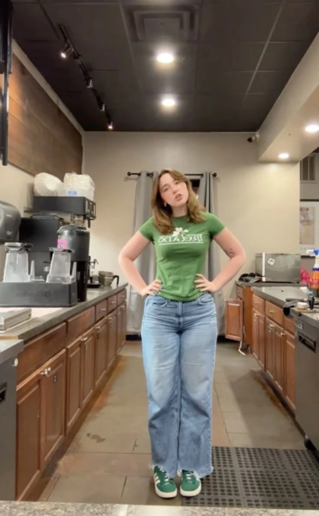 Light wash jeans give the outfit a relaxed and laid-back feel, making it great for busy school days. Matching green sneakers help the whole outfit look more complete and well-planned. This look is simple enough for studying but still cool enough for hanging out after class.